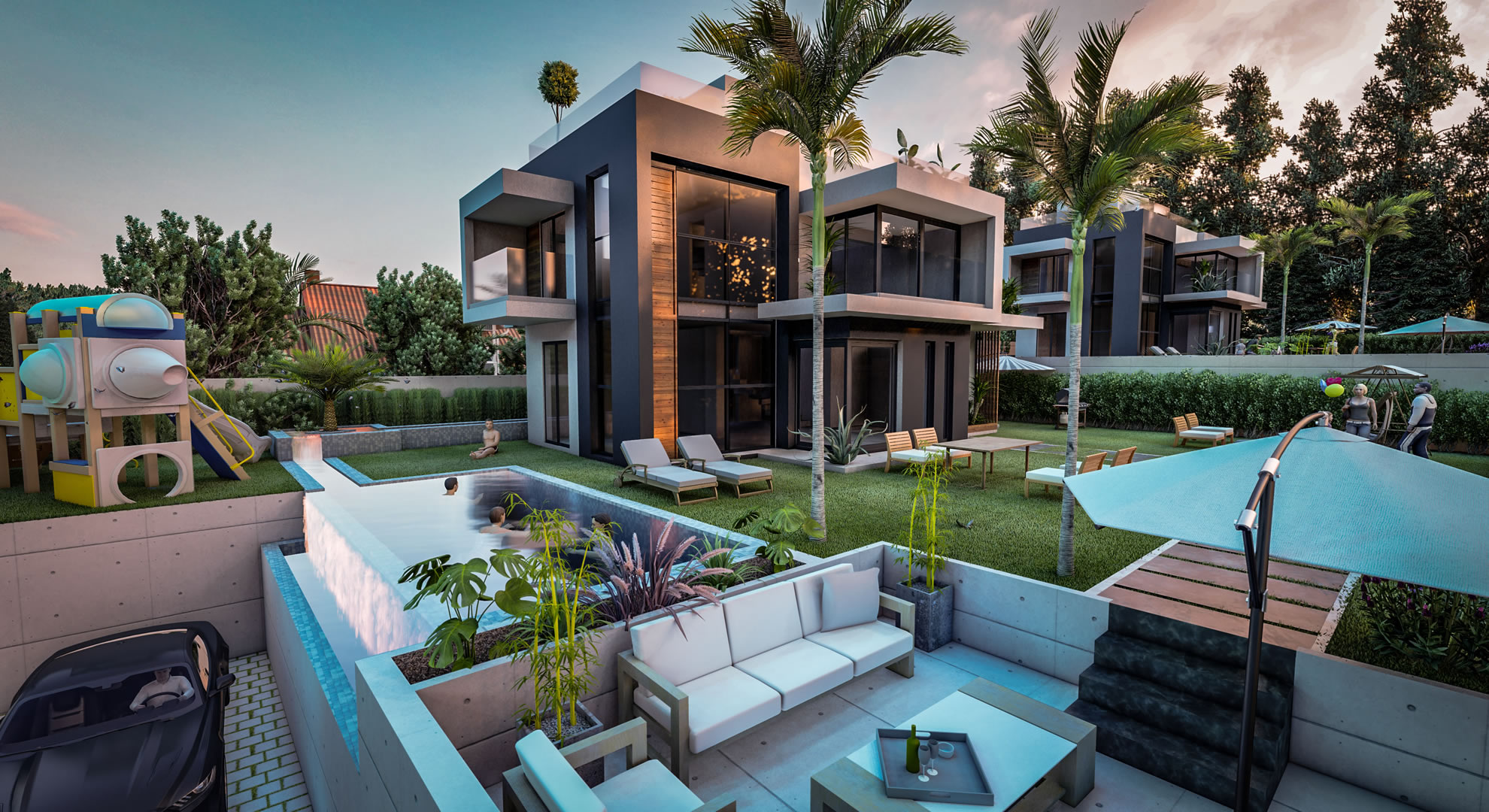 Proje sahibi teknik açıdan gerekli görülmesi durumunda projede değişiklik yapma hakkına sahiptir. Villaların dekorasyonu görsel amaçlıdır.